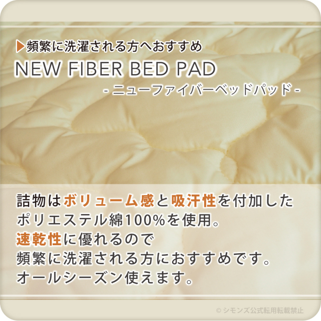 ボリューム感と吸汗性を付加したポリエステル綿を使用したベッドパッドです。