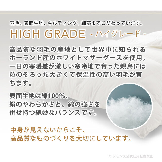 世界中から良質な羽毛を厳選したシモンズのこだわりの羽毛布団です。